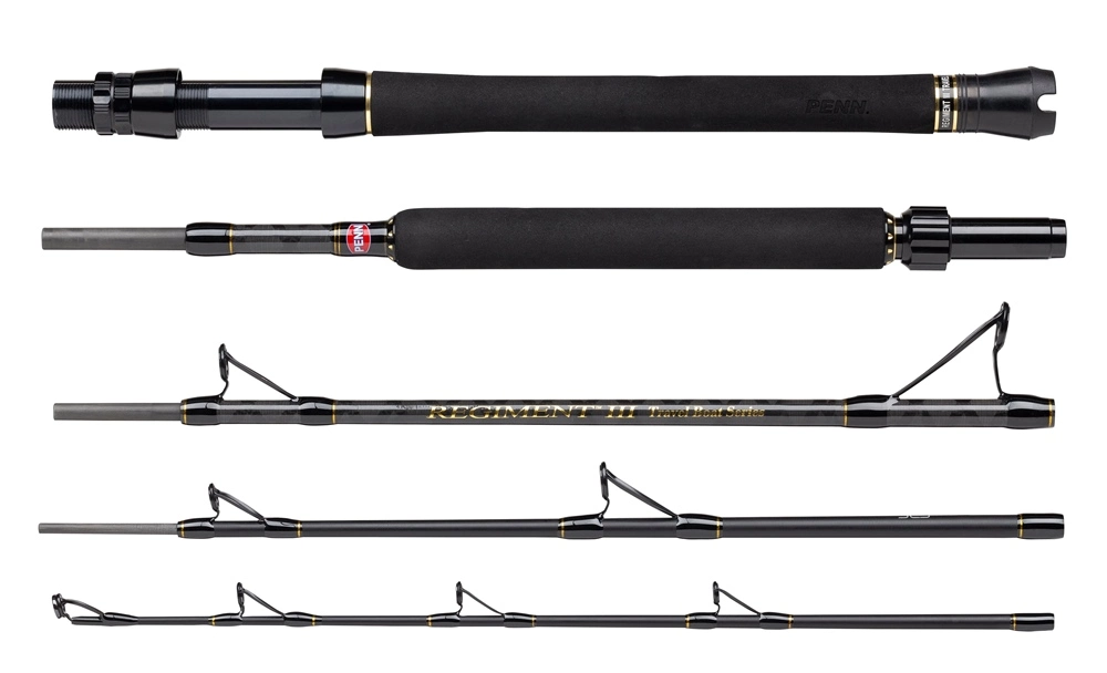 The PENN Regiment III Boat Travel 5pcss are especially designed for the travelling angler. Due to the 5pcs construction, these have a short transport length, making them fit inside of your suitcase. Next to that, these are coming in a special hardcase Cordura tube to protect the during transportation. These are constructed from a 30 ton carbon blank in combination with SLS3 technology, resulting in low weight and thin diameter blanks with incredible strength. These are designed to handle both braided and mono lines and are fitted with the best SeaGuide guides. The metal reel with locking nut makes sure that you can fully lock the reel on the, so you don’t have to worry about your reel getting loose during the fight of a big fish. So if you are looking for a perfect and super strong all-round boat with a short transport length – the Regiment III Boat Travels are your way to go!