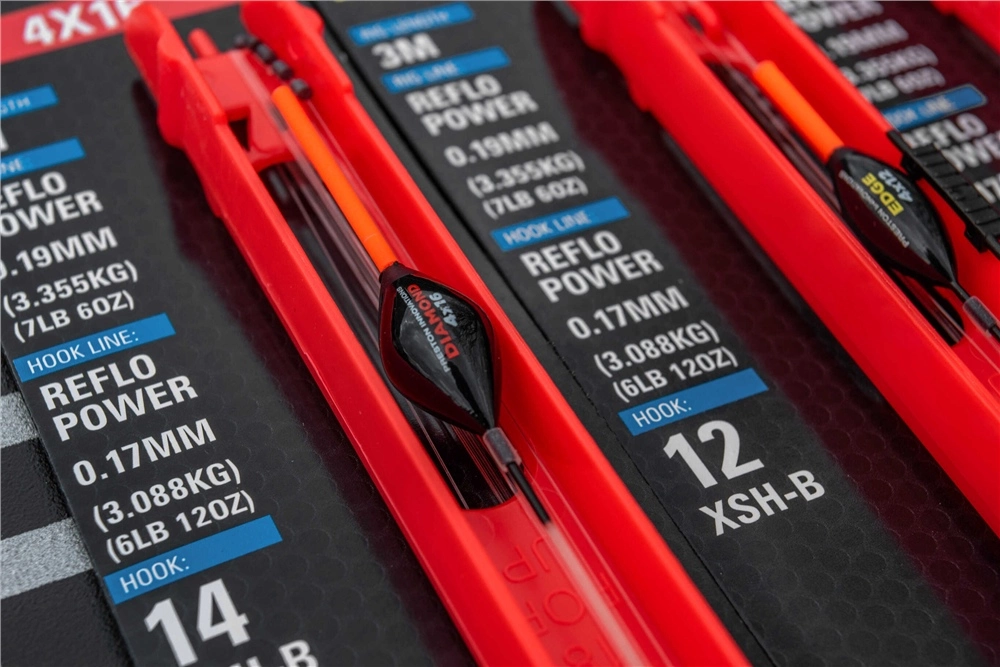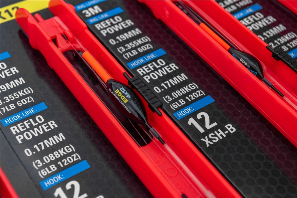 A super strong range of commercial carp rigs put together with high quality Preston components. Coming in a wide range of styles covering everything from down the edge to shallow and F1 patterns. With all floats in the range featuring the latest dura side eyes for extra strength and durability over standard float designs. All the rigs used are built with Preston’s Reflo power hooklength and mainline and feature their popular XSH-B hooks. An all round hook that can be used with a variety of baits.