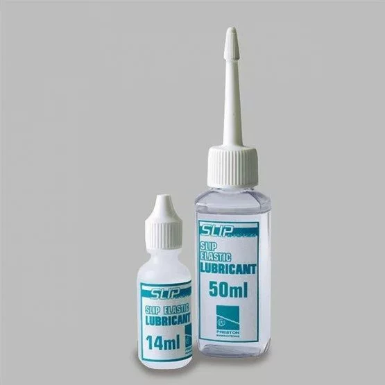 Slip Elastic Lubricant is the perfect lubricant for all Preston pole elastics. The thin liquid adheres to the elastic to form an ultra fine film that ensures smooth elastic performance. Available in 14ml and 50ml.